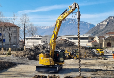 Le chantier consiste en un forage dans l'Isère pour l'installation d'un système de géothermie. La CAT - 325 Next Gen est utilisée pour effectuer les travaux de forage, qui nécessitent une précision et une puissance importantes. La machine est équipée d'un mât de forage qui permet d'atteindre des profondeurs importantes et d'extraire des échantillons de sol pour l'analyse. L'équipe de chantier surveille en permanence le forage pour s'assurer que le processus se déroule en toute sécurité et que les normes de qualité sont respectées. Grâce à la puissance et à la précision de la CAT - 325 Next Gen, le forage est réalisé rapidement et efficacement, permettant l'installation du système de géothermie dans les meilleurs délais.